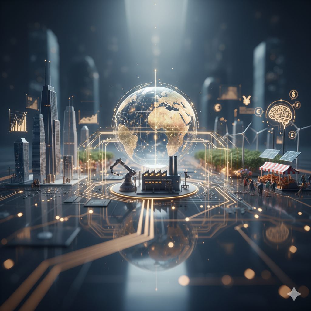 Daha sonra, şəhər iqtisadiyyatı gəlir, sonra ölkə iqtisadiyyatı. Beləcə davam edərək, ən sonda, ən böyük iqtisadiyyat olan dünya iqtisadiyyatı yaranmış olur. Hər bir məkanın ölçüsünə görə, nəinki iqtisadiyyat özü böyüyür, eyni zamanda onun formaları da dəyişir və daha da mürəkkəbləşir.